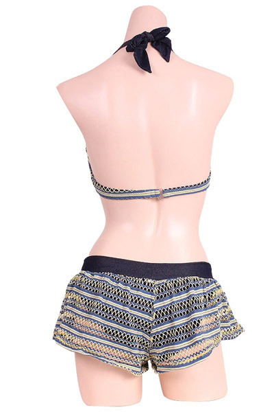 デニムコラボメッシュレースビキニ ショートパンツ3点セット エメラルドグリーン