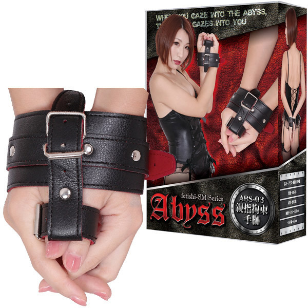 SMプレイの深淵へと導く!赤と黒のフェイクレザーが妖艶な『ABYSS』シリーズのSMグッズ「Abyss(アビス) 親指拘束手枷」。