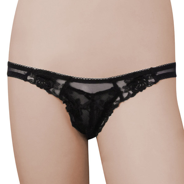 シースルー&フラワーレースポケット付きフルバック ブラック