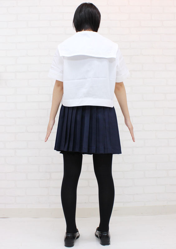 白いセーラー服に黒スカーフがマッチ!清楚で爽やかな制服コスチューム。