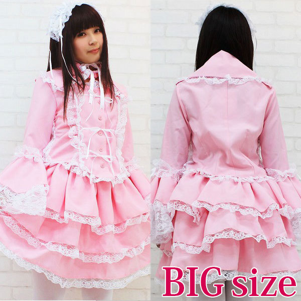 BIGサイズ:B〜100cm・W72〜120cm 丈:上着52cm(袖丈65cm・肩幅40cm)・スカート49cm 付け襟(首回り)43cm