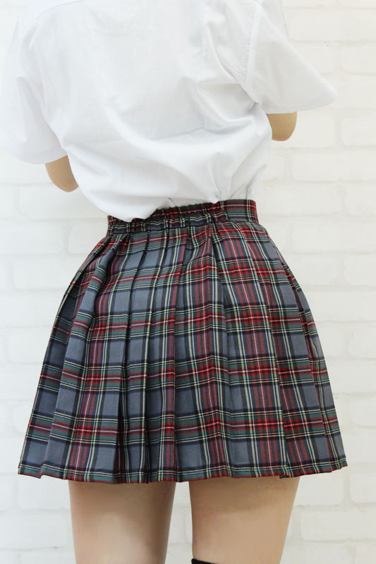 女子校生コスプレの定番アイテム!キュートなグレーのチェック柄プリーツスカート(M)。