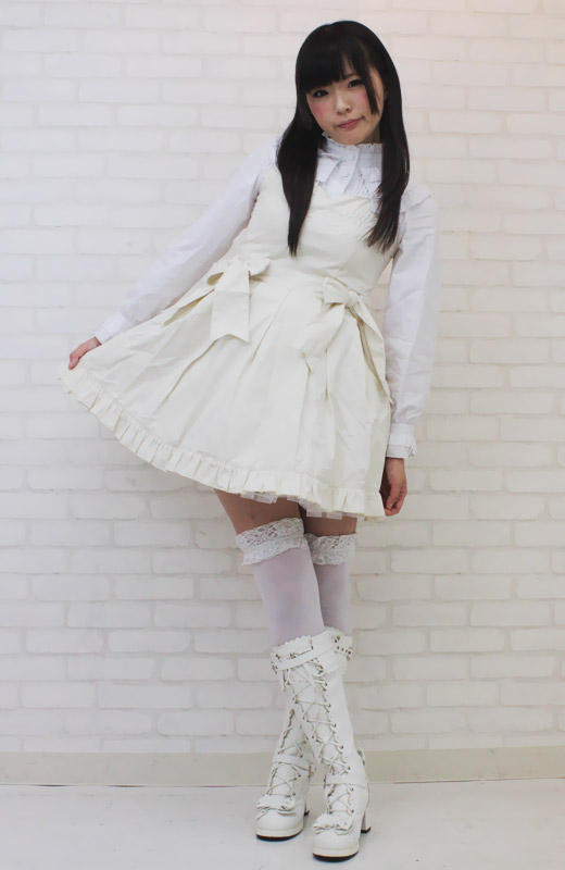 セット内容:ジャンパースカート(横ファスナー、後ろ編み上げシャーリング、パニエ内蔵)・ブラウス(前ボタン、後ろ編み上げシャーリング)