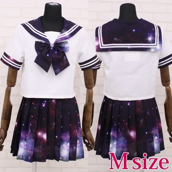 数多の星や銀河が美しい宇宙柄がプリントされたセーラー服コスチューム!黒や白のニーハイからハイソックスまで何でも合わせられます。