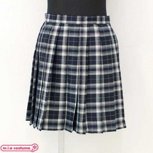 ポケット付きのチェック柄プリーツスカート単品 濃紺×クリーム Lサイズ
