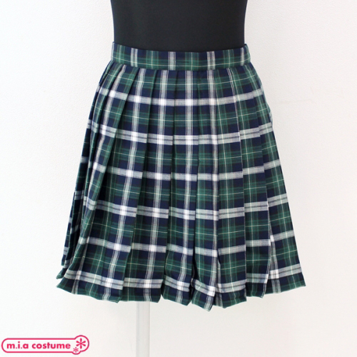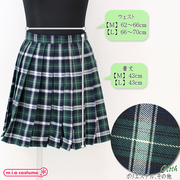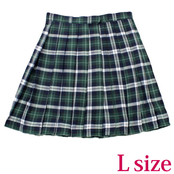 ポケット付きのチェック柄プリーツスカート単品 緑×白 Lサイズ