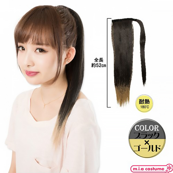 二つ使えばツインテールにもアレンジ可能♪地毛に馴染みやすいサラサラの毛質で、ブラック×ゴールドのカラーリングだからライブなどのイベントにもおススメです。