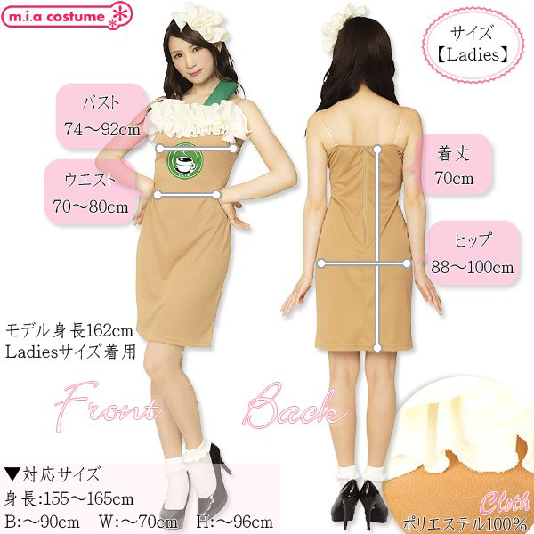 対応サイズ:身長155〜165cm・B〜90cm・W〜70cm・H〜96cm 実寸:B74〜92cm・W70〜80cm・H88〜100cm・着丈70cm(背中心)
