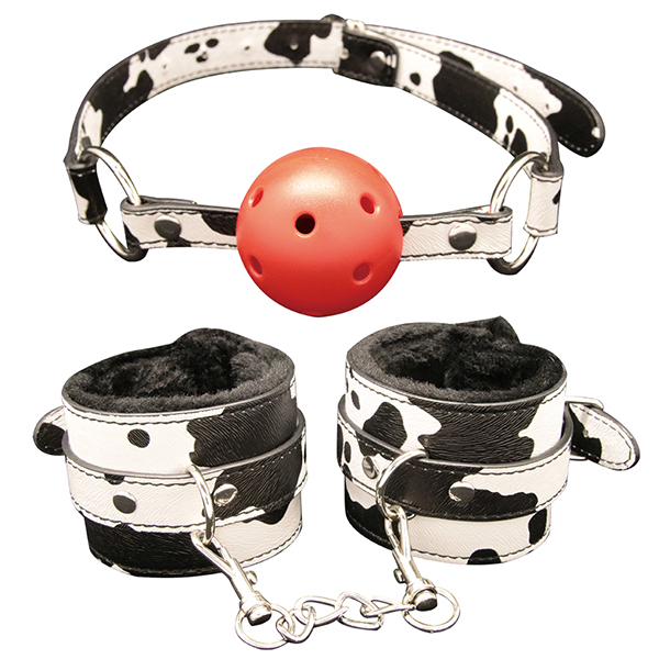 ユニークな牛柄デザインが印象的なSM入門用アイテムです♪セットには手枷・足枷・アイマスク・ボールギャグ・ニップルクリップの5点が含まれています!各アイテムは合皮素材で作られており、扱いやすくやわらかな使用感です♪手枷と足枷はフックで簡単に着脱可能で、初心者にもおすすめです!牛柄デザインはコスチュームと組み合わせることで、より世界観を楽しめます♪アイマスクで視界を遮ることで、感覚を引き立てる演出が可能です!収納や持ち運びにも便利なコンパクトなサイズ設計となっています♪気軽に雰囲気を変えてみたい方にもぴったりなセット内容です!ご家庭での遊びを少しだけ特別なものにしたい方にもおすすめです♪日常とは違う体験を求める方に最適なSMグッズのスターターセットです!●KNK-112