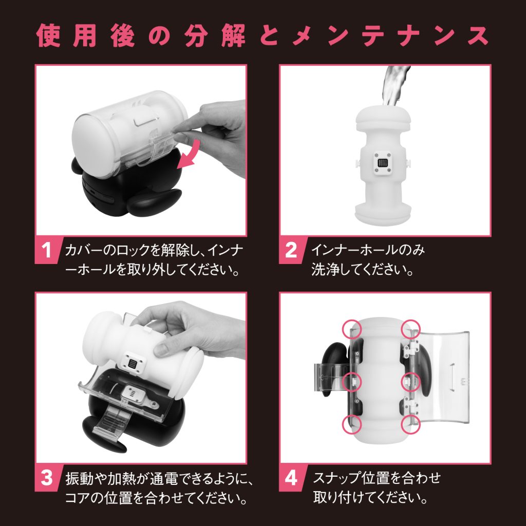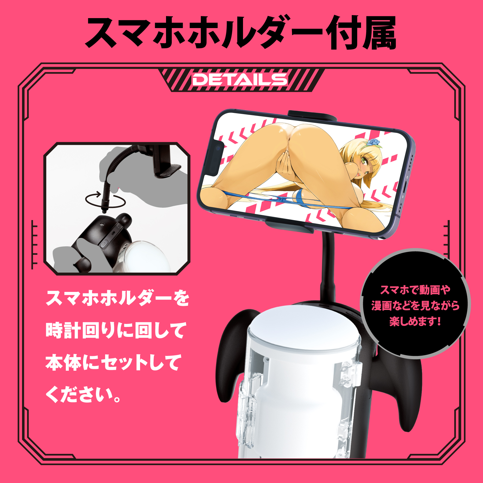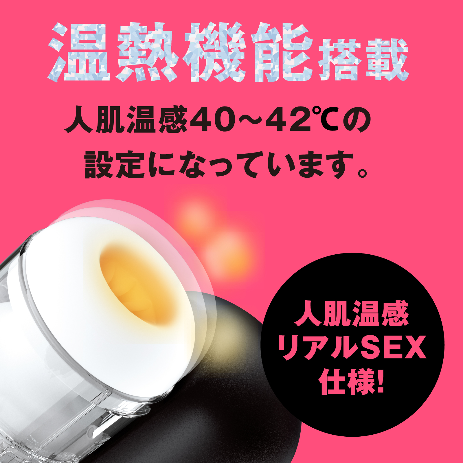 ポカポカとろけるガン突きピストンマシーン!ピストン8パターン×振動 10パターン!温熱機能搭載で人肌温感リアルSEX仕様!スマホホルダー付属なので動画などを見ながら楽しめます!高機能てんこ盛りのハイクオリティ電動オナホです!初心者にも優しく使いやすい電動ホールです。2つボタンでラクラク操作 & 後処理簡単!ホールを取って洗うだけ & ツインハンドルで安定した手持ち操作が可能!インナーホールは伸縮性抜群のふんわりとろけるソフト素材です。大きめのイボがコリコリと360°絡みつくので、素材は柔らかいのに刺激的な感触です。ぷにっと柔らかい優しい肌触りの超肉厚挿入口にとろけちゃう!直接肌に触れるものだから、安全性と感触にこだわった高品質なエラストマーを使用しています。静音設計 ≦60dB。最先端技術によりパワフルなのに静かなピストンを実現!稼働音を気にせずプレイに集中できます。温熱機能は人肌温感40~42°の設定になっています。同梱内容:カップ本体、インナーホール、スマホホルダー、充電用USB Type-C式ケーブル、パウチローション、取扱説明書。パッケージイラスト:maruku